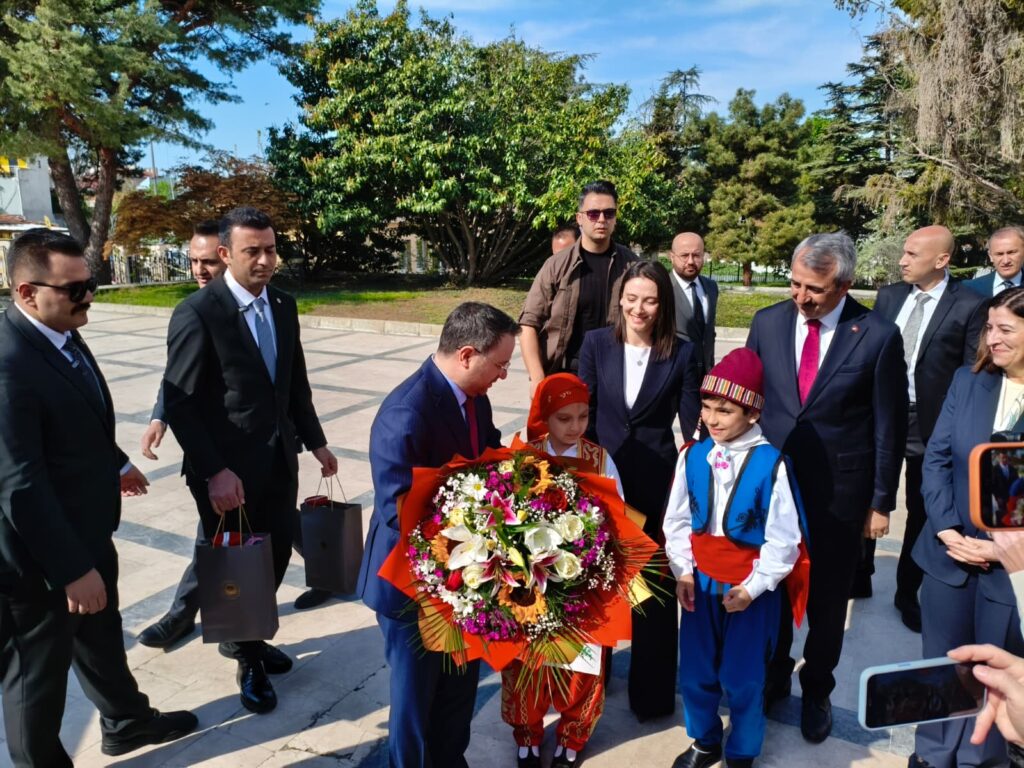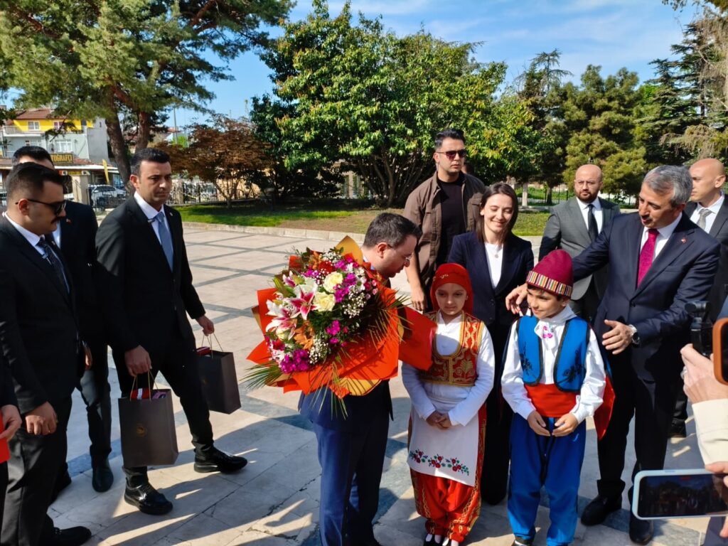 Valilik binasına gelişinde karşılanan Bakan Gürlek’e çocuklar tarafından çiçek takdim edildi.