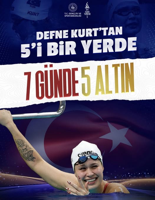 “Milli gururumuz Defne Kurt, Dünya Şampiyonası’nda 7 günde tam 5 altın madalya kazanarak adını tarihe altın harflerle yazdırdı! Böylesine büyük bir başarı, ülkemize ve gençlerimize ilham kaynağı olmuştur. Defne Kurt’u gönülden tebrik ediyor, başarılarının daim olmasını diliyorum.”