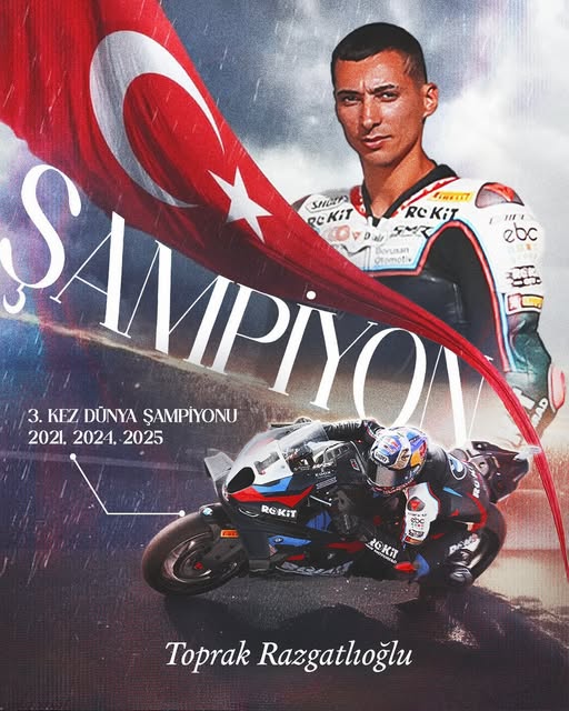 2025 Dünya Superbike Şampiyonası’nda büyük bir başarıya imza atan millî motosikletçi Toprak Razgatlıoğlu, kariyerinde 3. kez dünya şampiyonu olarak Türkiye’ye bir kez daha gurur yaşattı.