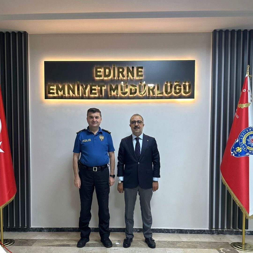 Cumhurbaşkanlığı İletişim Başkanlığı Edirne Bölge Müdürü Mehmet Zahit Talha Arar, Edirne’ye atanan ve görevine başlayan İl Emniyet Müdürü Muhittin Ayhan’a hayırlı olsun ziyaretinde bulundu.