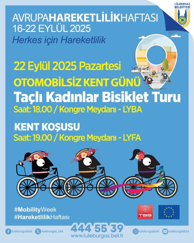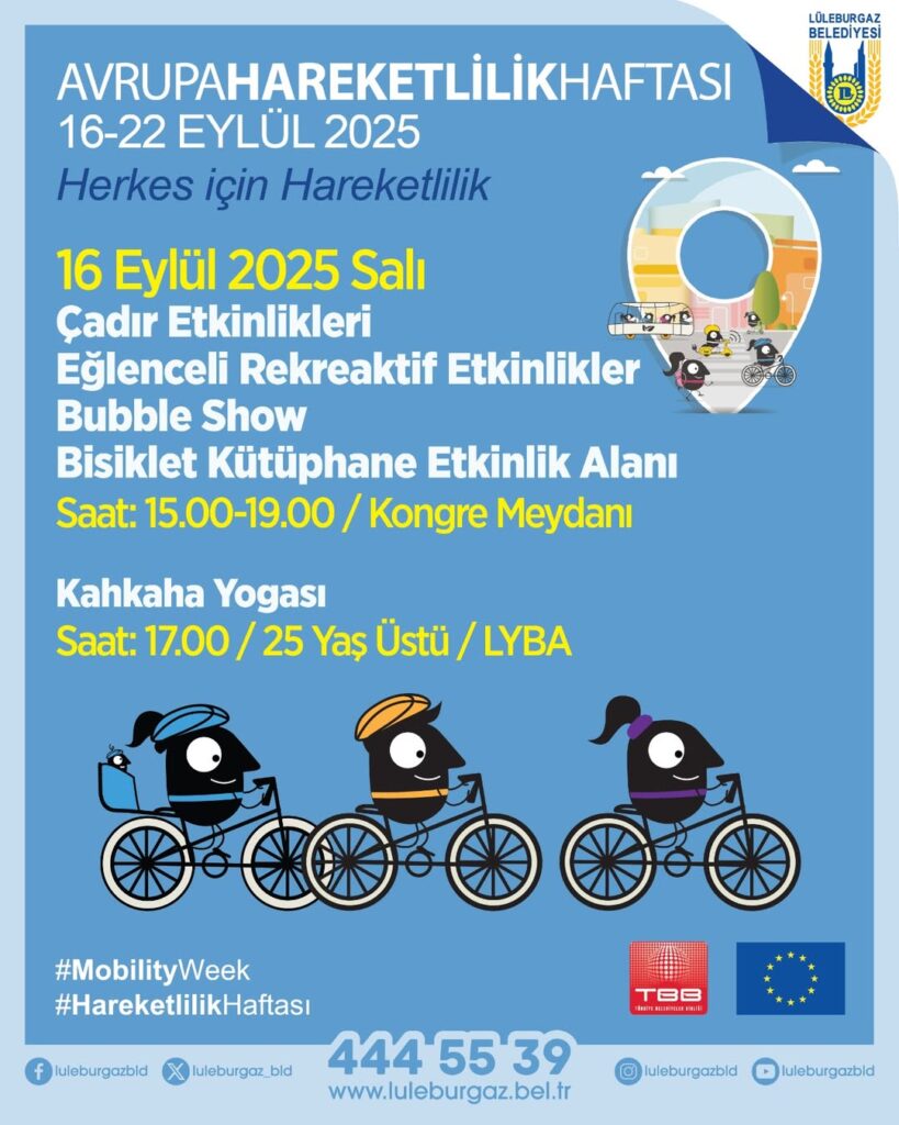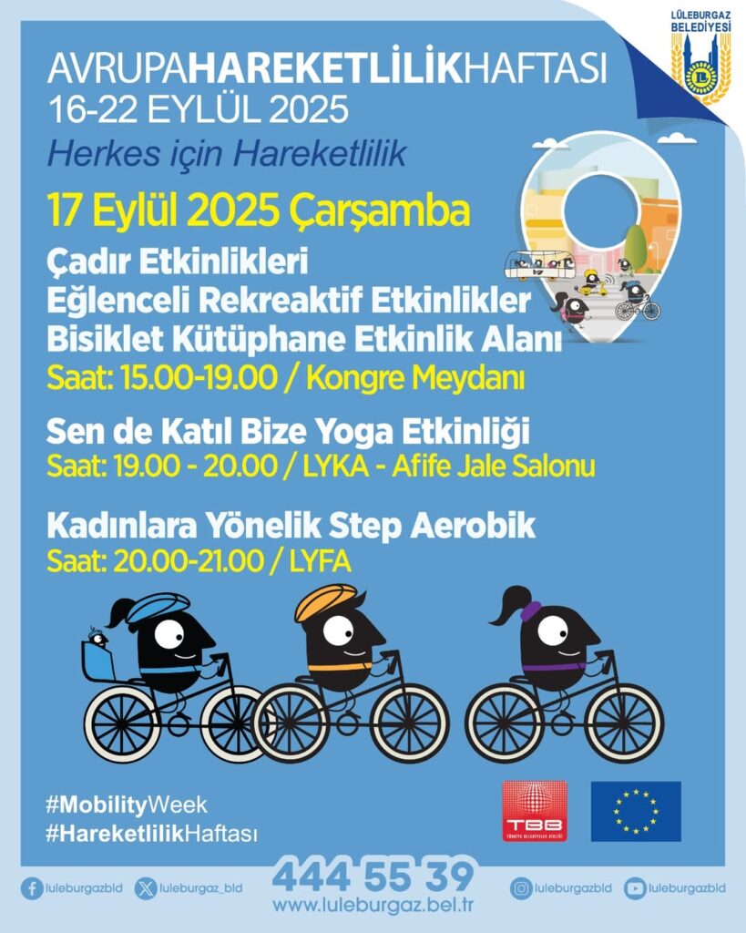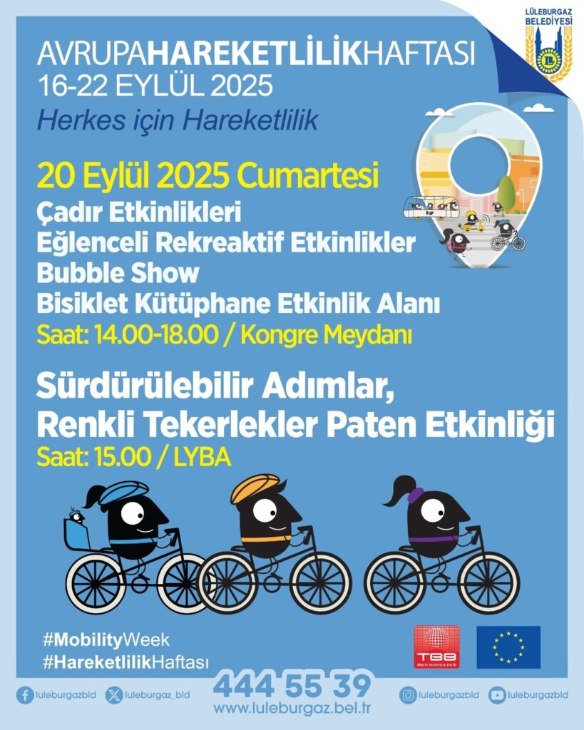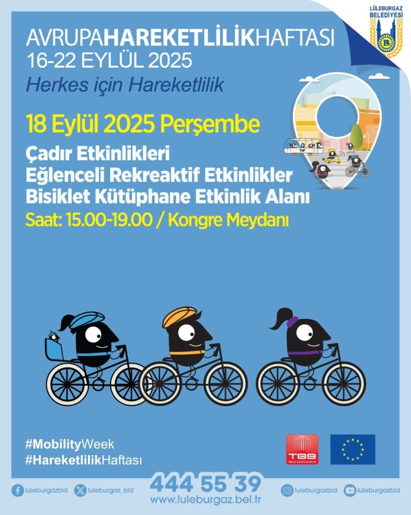 Lüleburgaz Belediyesi, 16-22 Eylül 2025 tarihleri arasında Avrupa Hareketlilik Haftası kapsamında birçok etkinliği vatandaşlarla buluşturacak.
