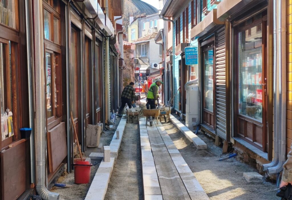 Edirne’de uygulanan Sokak Sağlıklaştırma Projesi kapsamında, tarihi Batı Pazarı olarak bilinen Ayakkabı Tamirciler Çarşısı’nda restorasyon çalışmalarında önemli bir aşamaya gelindi. Altyapı işleri tamamlanırken, üstyapı çalışmalarına geçildi ve sokak taşlarının döşenmesine başlandı.