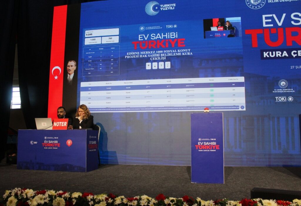Programın sonunda dua edilmesinin ardından kura çekimine geçildi ve 500 bin sosyal konut projesi kapsamında Edirne’de yapılacak 2 bin 530 konutun hak sahipleri resmen belirlendi.