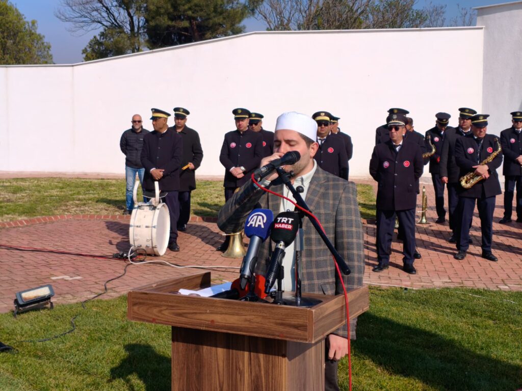 Saygı duruşu ve İstiklal Marşı’nın ardından, şehitler adına Kur’an-ı Kerim tilavetini Fatih Samet Okumuş gerçekleştirdi.