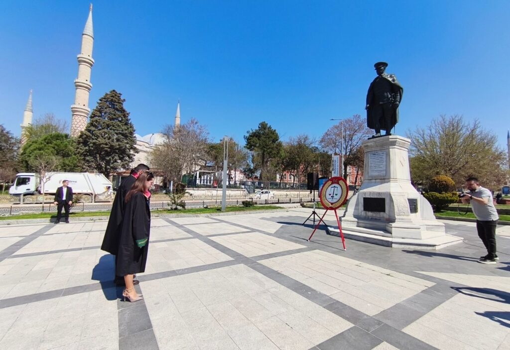 Edirne Barosu, 5 Nisan Avukatlar Günü dolayısıyla düzenlenen törenle meslektaşlarını bir araya getirdi. Tören, saygı duruşu ile başladı. Ardından İstiklal Marşı okunarak Atatürk büstüne çelenk sunuldu. Törenin resmi bölümlerinin tamamlanmasının ardından Edirne Baro Başkanı Gökhan Karakoç, meslektaşlarına hitap etti.