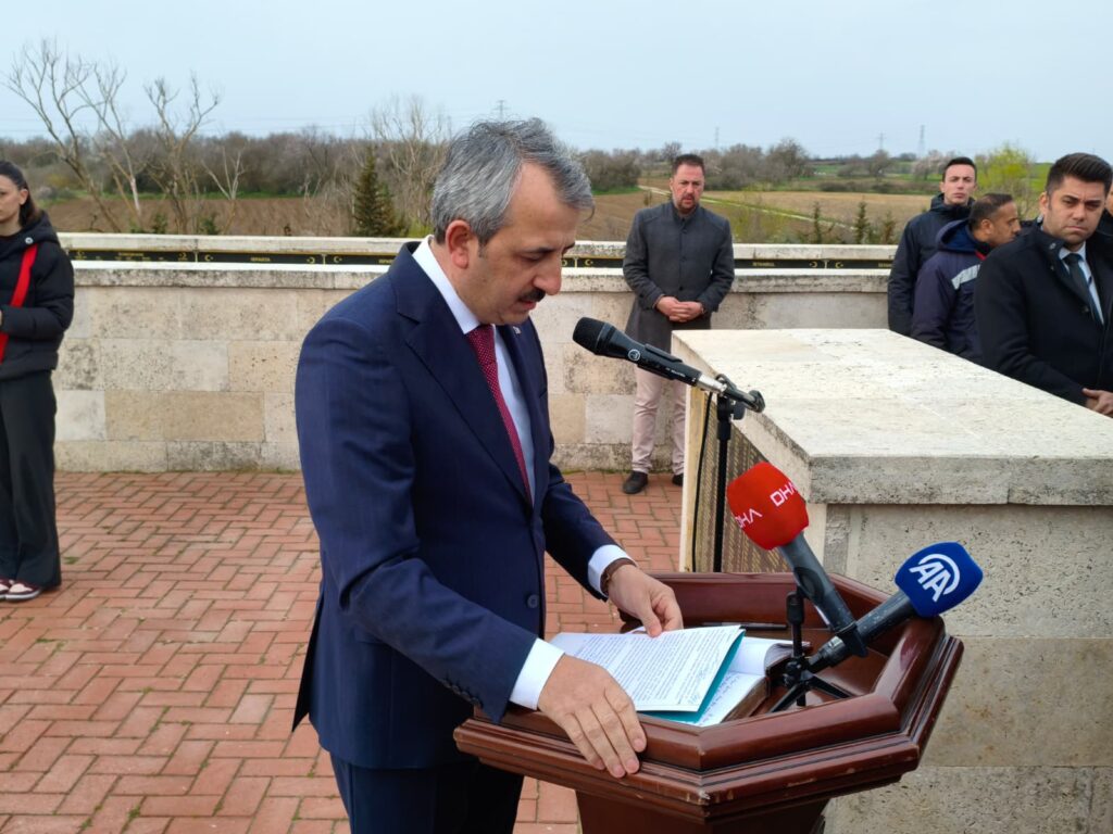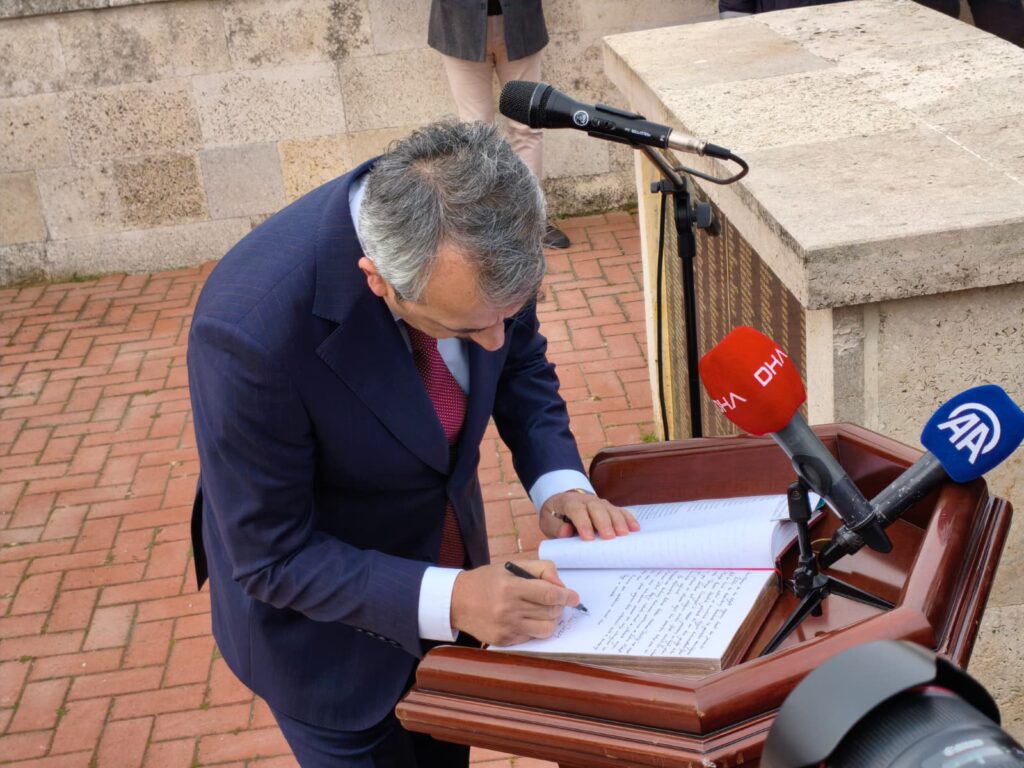 Saygı duruşu ve İstiklal Marşı ile başlayan törende şehitler için saygı atışı gerçekleştirildi ve şehitlik anı defteri imzalandı. Anı defterini imzalayan Vali Yunus Sezer, şehitlikte bulunmanın hem onur hem de büyük bir sorumluluk olduğunu belirtti. Sezer, şehitliğin milletin bağımsızlık uğruna gösterdiği fedakârlığın, sabrın ve sarsılmaz inancın simgesi olduğunu vurguladı.