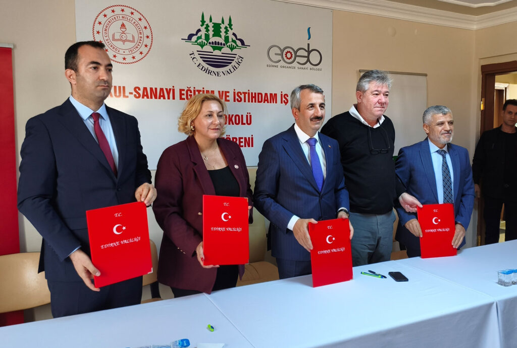 Protokolle birlikte Edirne’de mesleki eğitimin sanayiyle doğrudan entegre edilmesi, gençlerin eğitim sürecinden iş hayatına geçişinin desteklenmesi ve OSB’nin nitelikli iş gücü ihtiyacının karşılanması hedefleniyor.