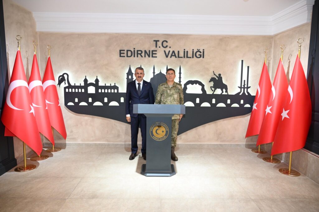 Edirne Valisi Yunus Sezer, 1. Ordu Komutanı Orgeneral Bahtiyar Ersay’ı makamında kabul etti.