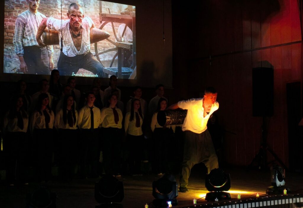 Programda gerçekleştirilen oratoryo sunumunda öğrenciler, Çanakkale cephesindeki kahramanlıkları canlandırdı. Seyit Onbaşı’nın 215 kg’lık top mermisini kaldırması, Mustafa Kemal’in Zeybek oynaması ve bir annenin evladını cepheye yollaması sahnelendi. Oratoryo sonrası program sona erdi.