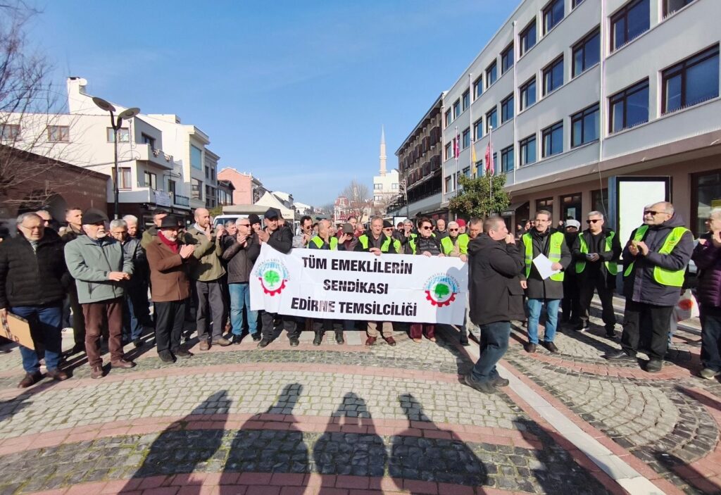 Basın açıklamasını okuyan Tüm Emeklilerin Sendikası Edirne Temsilcisi Hasan Kılıç, emeklilerin aylıklarının açlık sınırının altında kaldığını vurguladı. Kılıç, “Reva görülen aylıklar yoksulluk değil, açlık düzeyindedir. Bu tablo bir ekonomik zorunluluk değil, bilinçli bir siyasal tercihin sonucudur” dedi. Sağlık hizmetlerine erişimde yaşanan sorunlar ile artan kira ve gıda fiyatlarının, teknik değil doğrudan yaşam hakkını ve insan onurunu ihlal eden sorunlar olduğunu ifade etti.