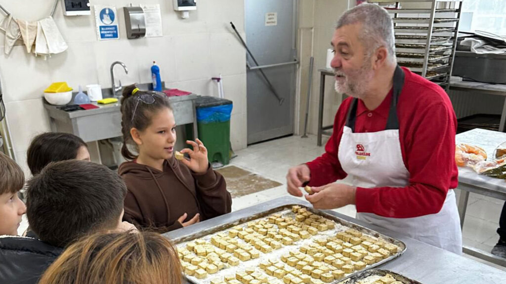 Edirne Milli Eğitim Müdürlüğü tarafından yürütülen “Minik Gözlemciler Üretime Yolculuk” Projesi kapsamında, ilkokul öğrencileri şehirdeki bir şekerleme üretim tesisini gezdi. Kentte “Kurabiyeci Dede” olarak tanınan şekerlemeci Arif Meriç, öğrencilere üretim süreci hakkında bilgi vererek sorularını yanıtladı.