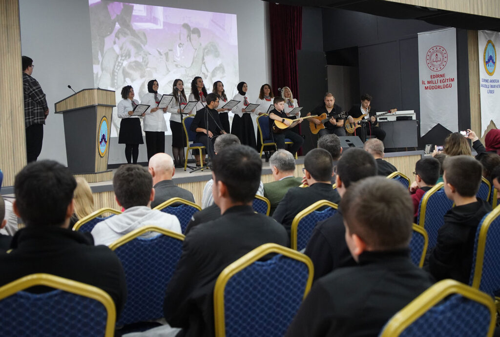 Programda öğretmen ve öğrencilerden oluşan koro, “Mağusa Limanı” ve “Benim Adım Öğretmen” başta olmak üzere çeşitli eserleri seslendirdi.