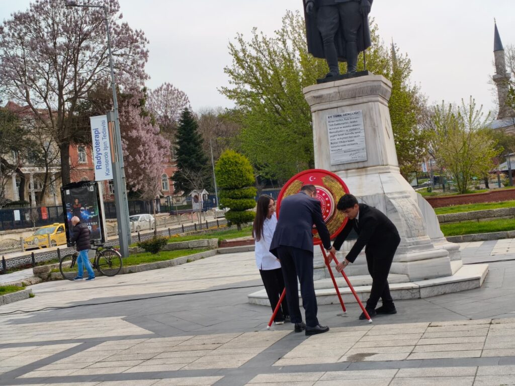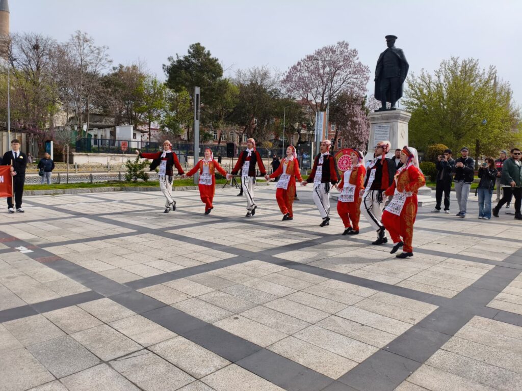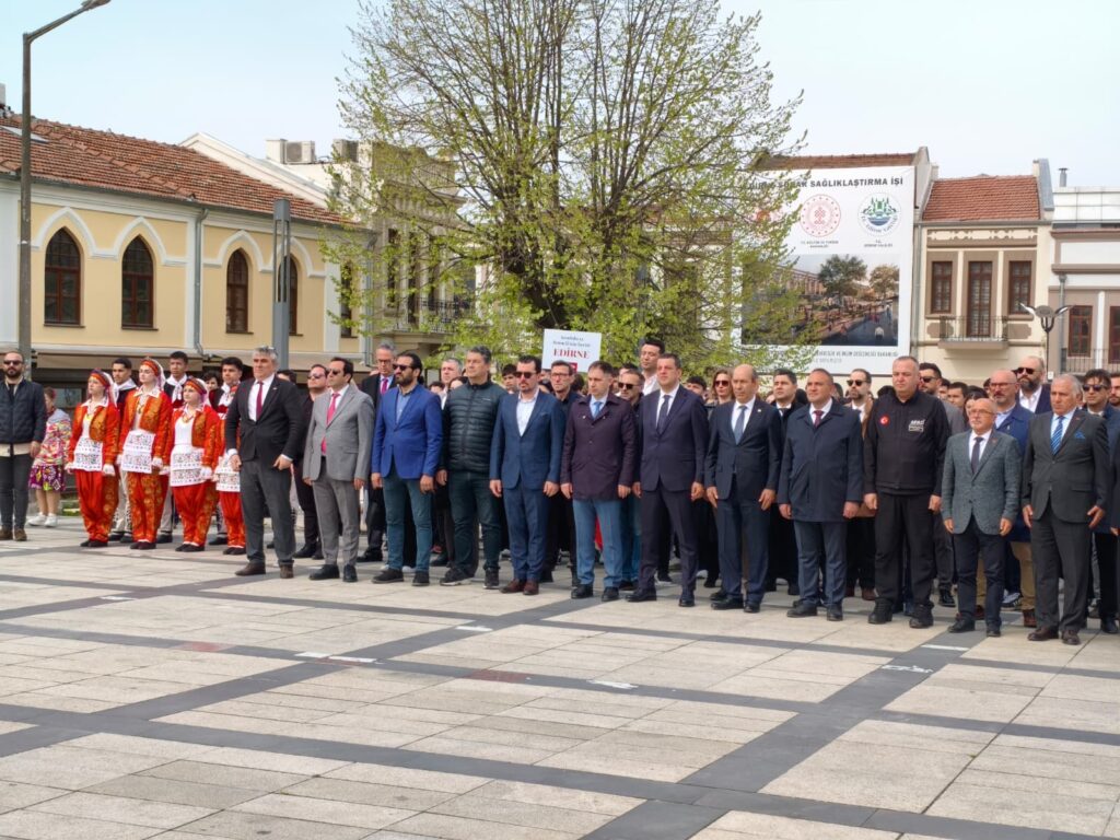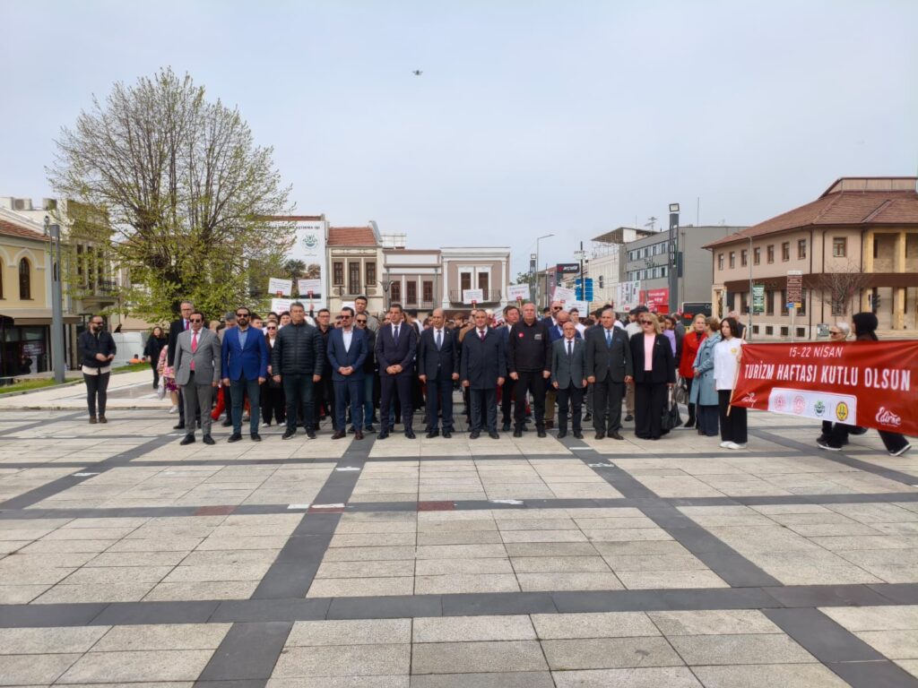 Turizm Haftası etkinlikleri kapsamında düzenlenen kortej yürüyüşünün ardından, Edirne’de Atatürk Anıtı’nda çelenk sunma töreni gerçekleştirildi. Tören, İl Kültür ve Turizm Müdürlüğü tarafından organize edildi.