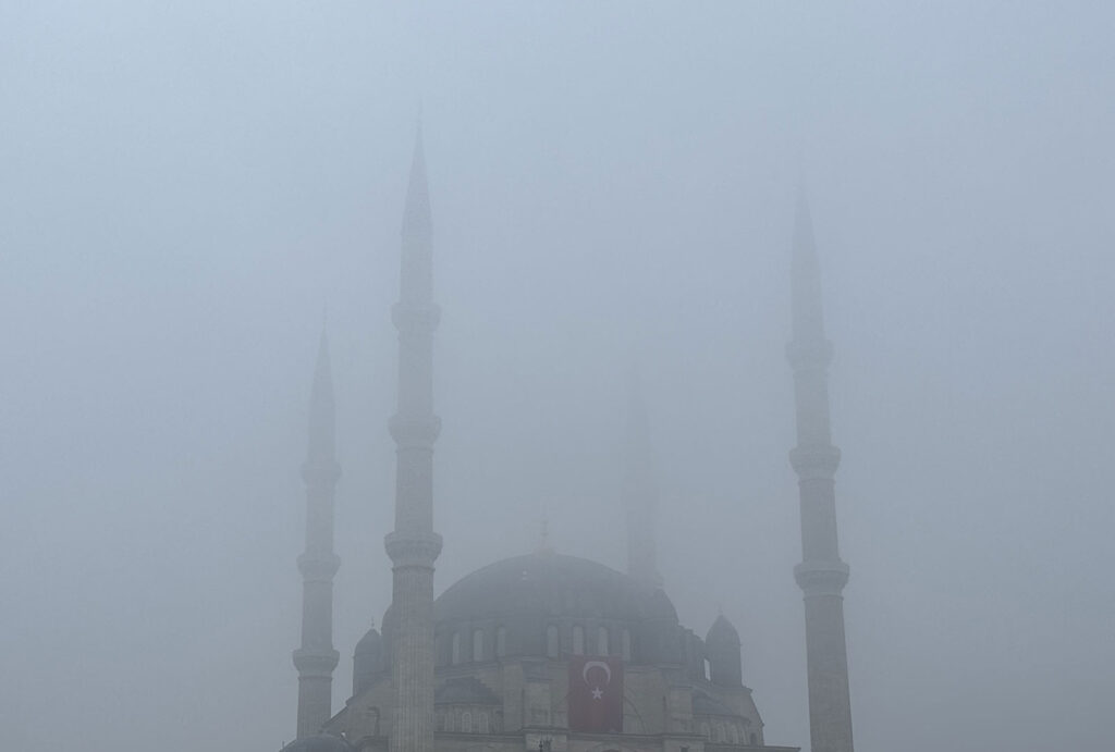 Edirne’de geceden bu yana etkili olan sis, kentte hayatı olumsuz etkiliyor. Yüksek kesimlerde görüş mesafesi yer yer 50 metrenin altına düştü. Selimiye Camisi başta olmak üzere birçok tarihi eser sis altında etkileyici görüntüler oluşturdu.