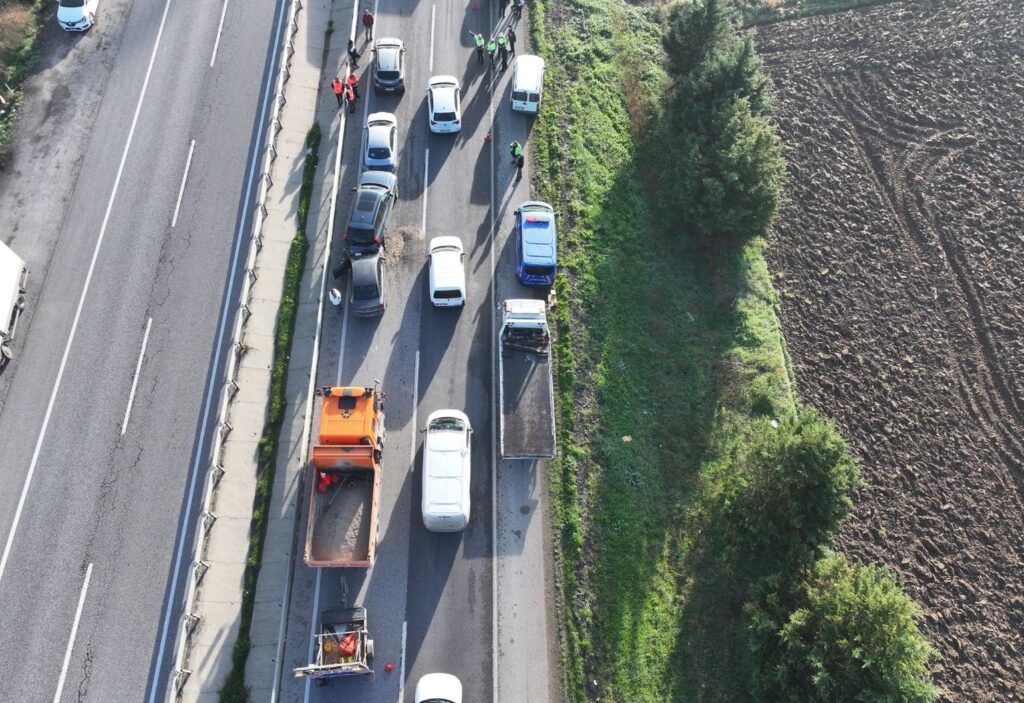 Edirne-Havsa D-100 kara yolunun 32. kilometresinde, Sazlıdere köyü yakınlarında 10 aracın karıştığı zincirleme trafik kazası meydana geldi.