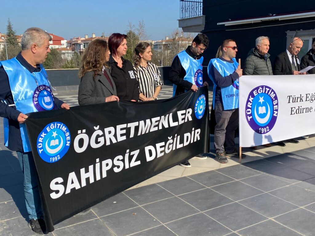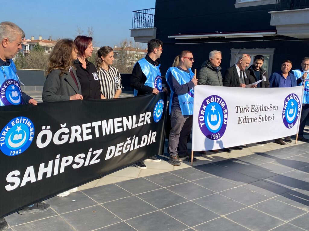 Türk Eğitim-Sen Edirne Şube Başkanı Mustafa Kaplan, eğitim çalışanlarına yönelik artan şiddet olaylarına ilişkin sert bir basın açıklaması yaptı. Kaplan, İstanbul Çekmeköy’de öğretmen Fatma Nur Çelik’in öğrencisi tarafından öldürülmesinin eğitim camiasını derin bir yasa boğduğunu belirterek, “Artık yeter. Daha kaç can yitireceğiz?” sözleriyle tepkisini dile getirdi.