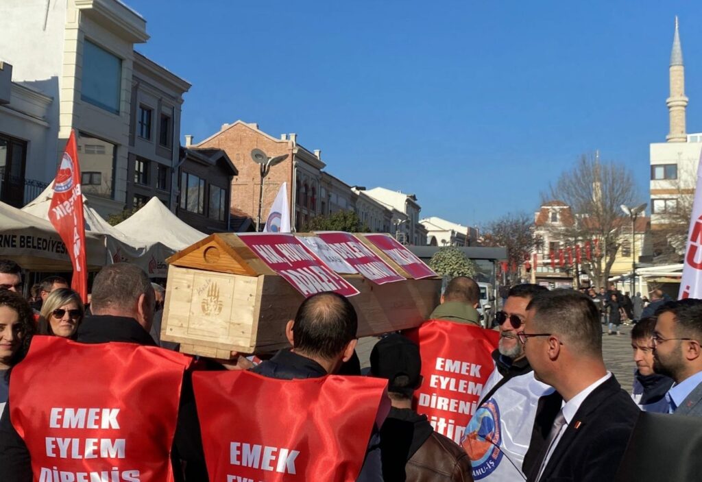 Birleşik Kamu-İş Konfederasyonu zorlaşan ekonomik durum ve yoksullaştırıcı bütçe politikalarına yanı sıra maaş ve ücretlerin erimesine tepki göstermek amacıyla iş bırakarak Edirne’nin Saraçlar Caddesi’nde basın açıklaması gerçekleştirdi.