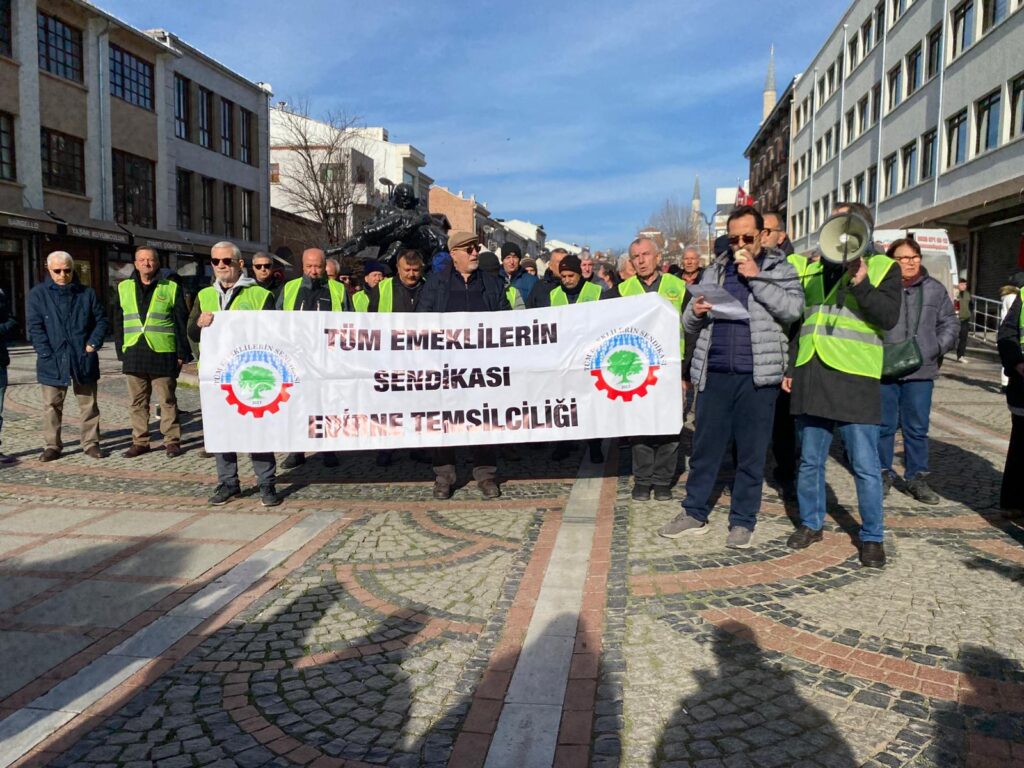 Tüm Emekliler Sendikası, emeklilerin yaşadığı ekonomik sorunlara dikkat çekmek amacıyla 81 ilde eş zamanlı basın açıklaması yaptı. Edirne’deki açıklama, Saraçlar Caddesi’nde Tüm Emekliler Sendikası Edirne İl Temsilciliği Yürütme Kurulu Üyesi Ayhan Fırtına tarafından okundu.