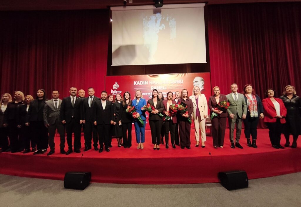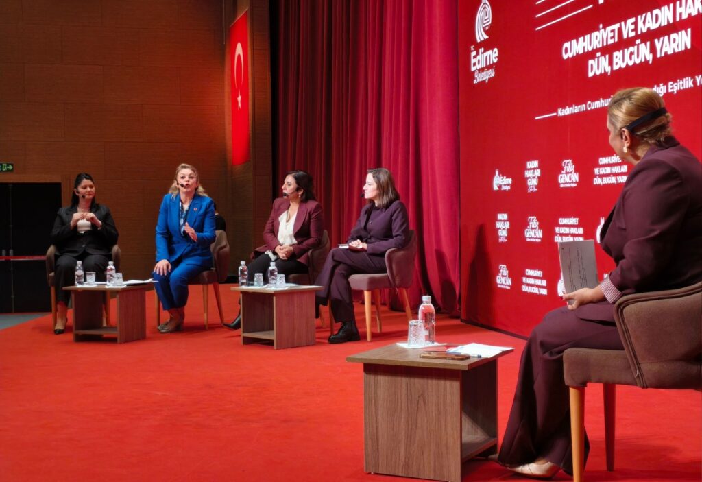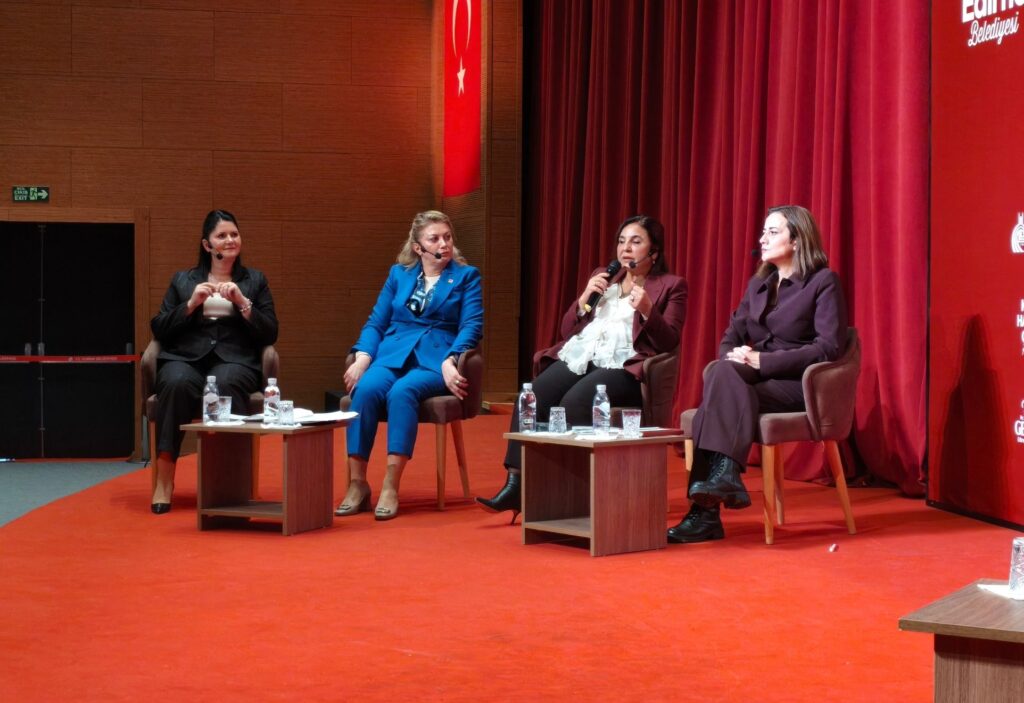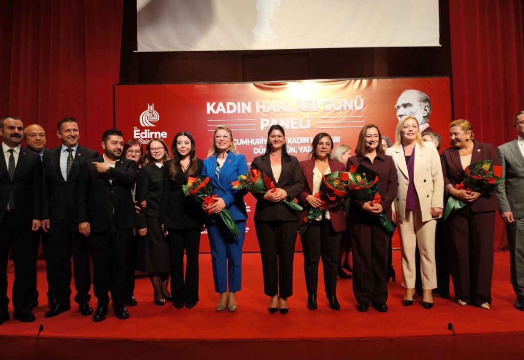 Edirne Belediyesi’nin 5 Aralık Kadın Hakları Günü kapsamında düzenlediği panelde konuşan Edirne Belediye Başkanı Av. Filiz Gencan, kadınların toplumsal mücadele tarihine ve bugün verdikleri eşitlik mücadelesine dikkat çekti. Panelde CHP Kadın Kolları Genel Başkanı Dr. Asu Kaya, CHP Parti Meclisi Üyesi Saniye Barut ve KKTC Milletvekili Doğuş Derya yer alırken, moderatörlüğü Edirne İl Genel Meclisi Başkanı Çiğdem Gegeoğlu üstlendi.