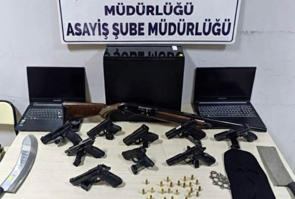 Örgüt elebaşı B.Y’nin 7 ayrı suçtan 3 yıl, örgüt yöneticisi R.D.K’nın ise çeşitli suçlardan 13 yıl hapis cezasıyla arandığı belirlendi. Şüphelilerin ev ve araçlarında yapılan aramalarda 10 ruhsatsız tabanca, 24 fişek, tüfek, 8 bıçak, muşta, maske ve bir miktar uyuşturucu madde ele geçirildi.