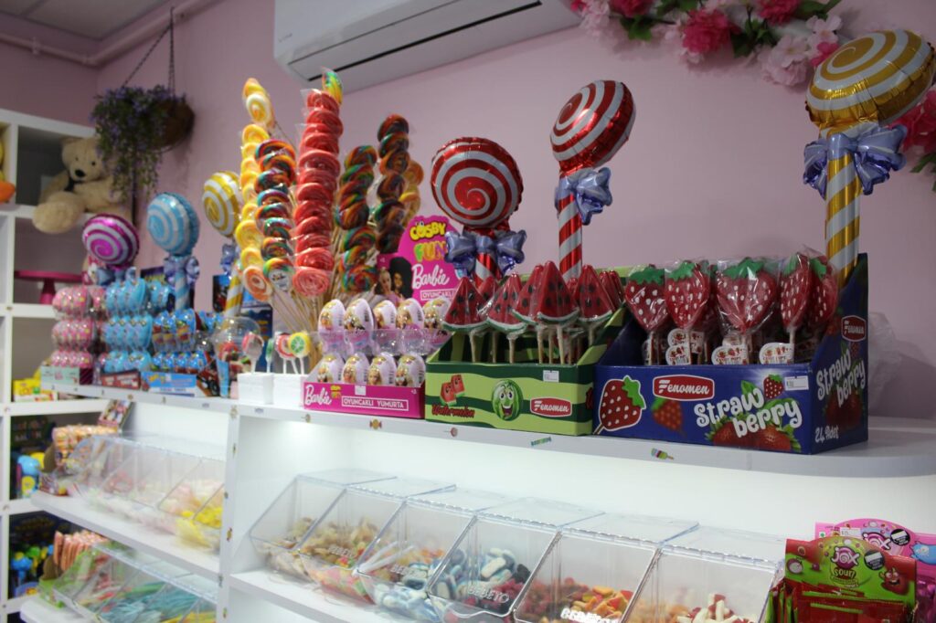 Land of Candy menüsünde bardakta waffle, kova waffle, mısır gevrekleri, sürpriz yumurtalar, çocuklara yönelik oyuncaklar, şekerlemeler, jelibonlar, çay ve kahve gibi pek çok ürün bulunuyor.