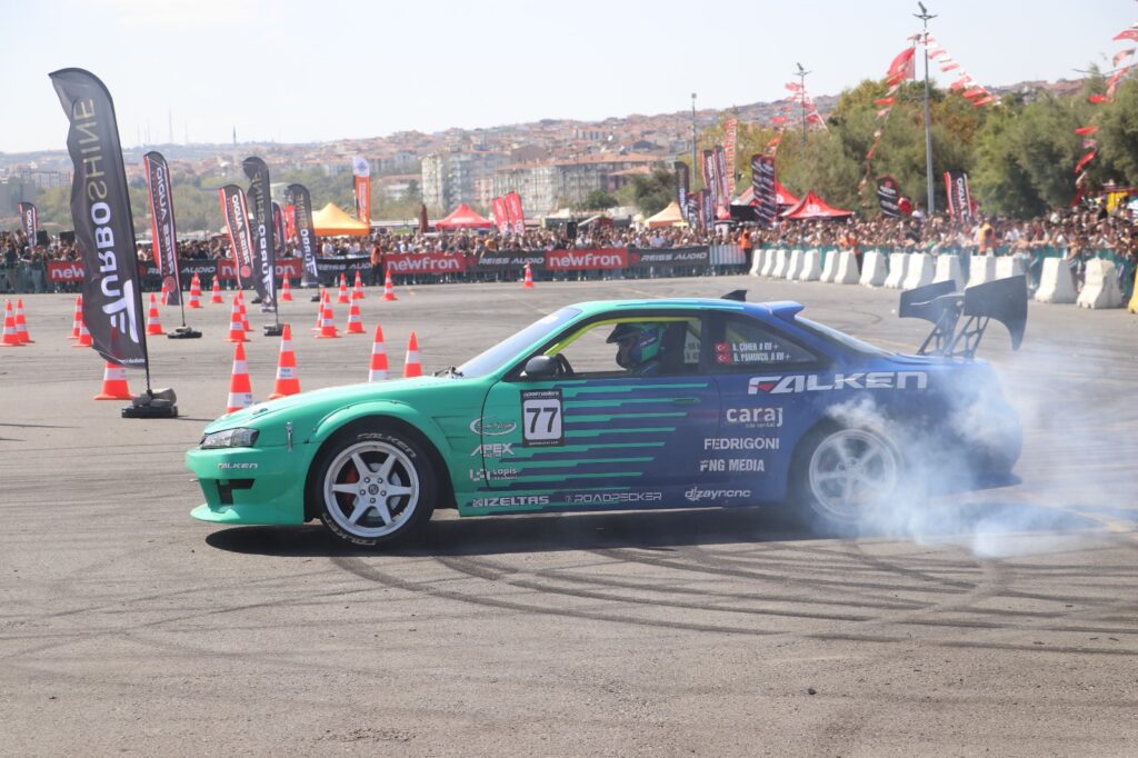 Etkinliğe katılan araç sürücüleri drift gösterisi yaptı.
