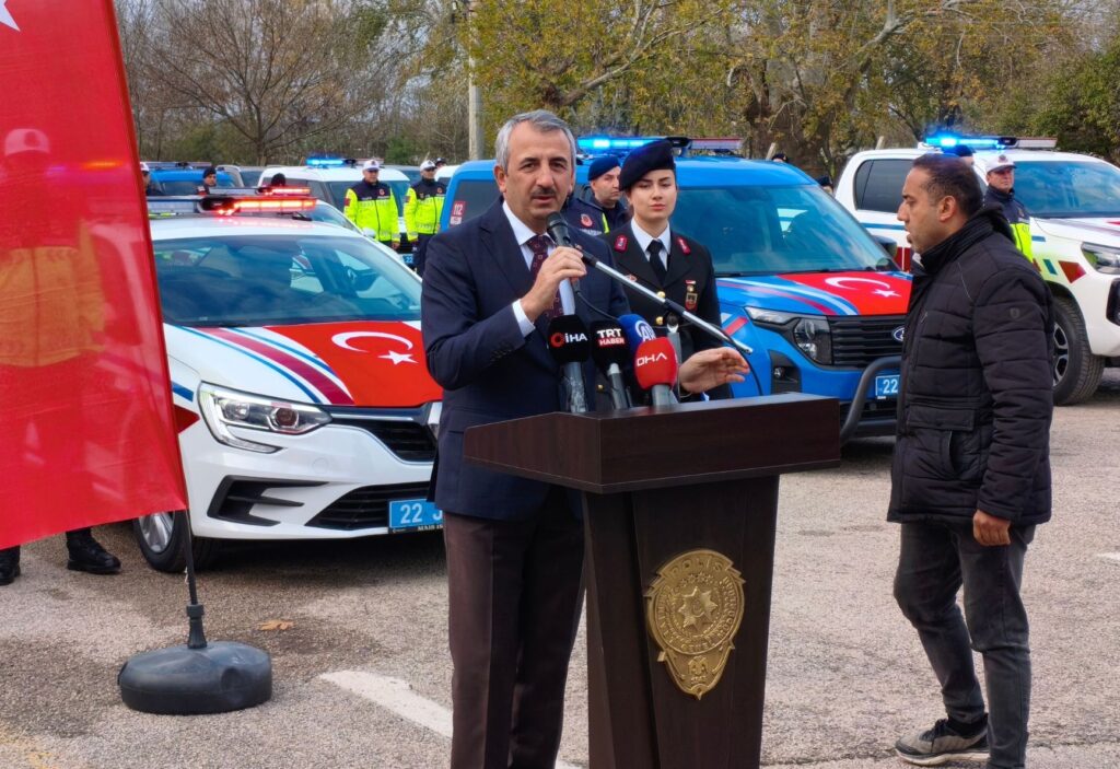 Edirne’de düzenlenen törende polis ve jandarma teşkilatına tahsis edilen yeni araçlar teslim edilirken, yetkililer güvenlik hizmetlerinin bu takviyeyle daha da güçleneceğini vurguladı.