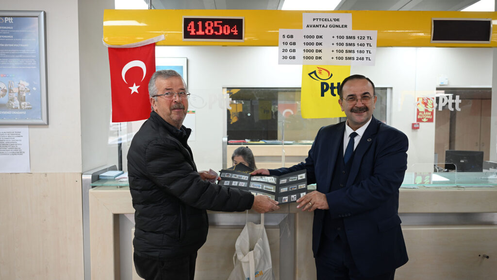 Etkinlik kapsamında, PTT’nin 185. müşterisi olan Hasan Tuna’ya pul albümü ve mini satranç takımının da yer aldığı hediyeler takdim edildi.