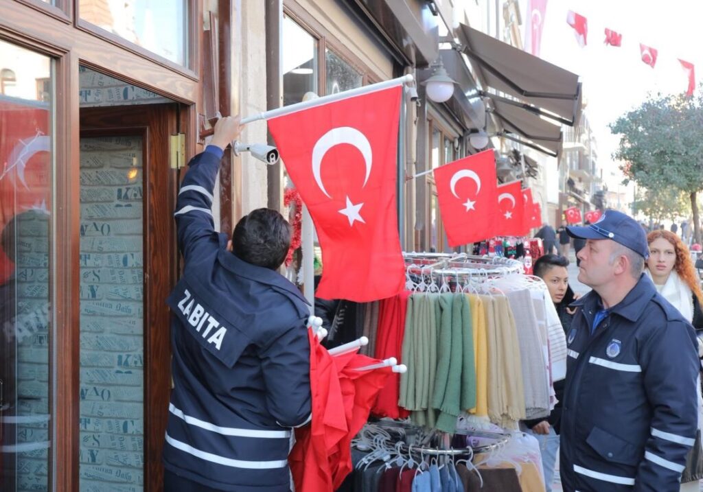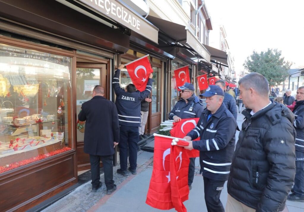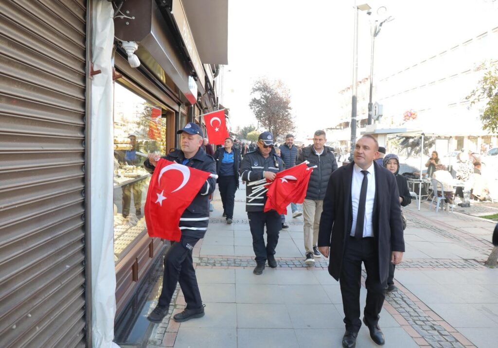 Belediye Başkan Yardımcısı Savaş Çerkez, Zabıta Müdürlüğü ekipleriyle birlikte bayrak asım çalışmalarına katılarak cadde esnafıyla bir araya geldi. Cadde boyunca dalgalanan ay-yıldızlı bayraklar, vatandaşların da yoğun ilgisini çekti.