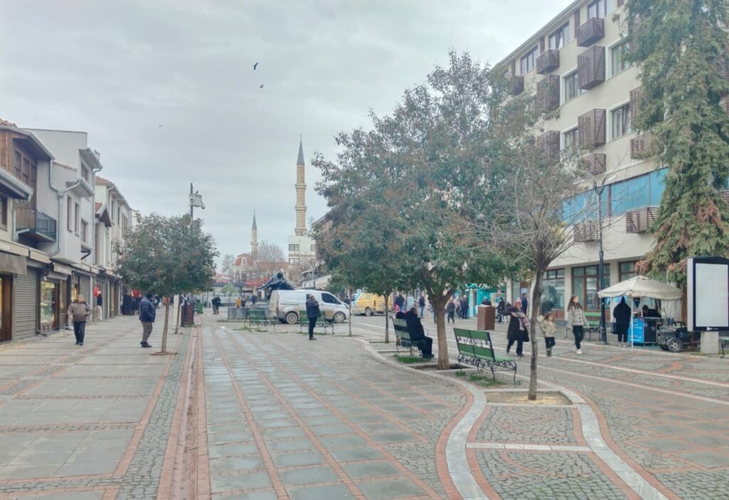 Saraçlar Caddesi, yeni haftanın ilk günü olan Pazartesi’ye sakin başladı. Hava sıcaklıkları birkaç derece artsa da sabah saatlerindeki bulutlu hava, hafif kasvetli bir görüntü oluşturdu.