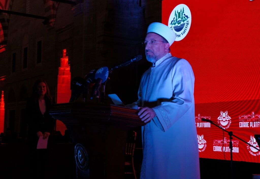 Diyanet İşleri Başkanı Prof. Dr. Safi Arpaguş, konuşmasında birlik, kardeşlik ve dayanışmanın önemine vurgu yaptı. Yurt içi ve dışından gelen misafirlere hitap eden Arpaguş, bu akşamki buluşmanın dostluk ve sevgi dolu bir ortamda gerçekleştiğini belirtti. Cenabıhak’tan insan onurunu zedeleyen her türlü olumsuzluğa karşı koruma ve birlikteliği devam ettirme dileğinde bulundu. Yaklaşan Kadir Gecesi ve Ramazan Bayramı’nın hayırlı olmasını temenni ederek, organizasyona katkı sağlayan Edirne Valisi ve ekibine teşekkür etti.