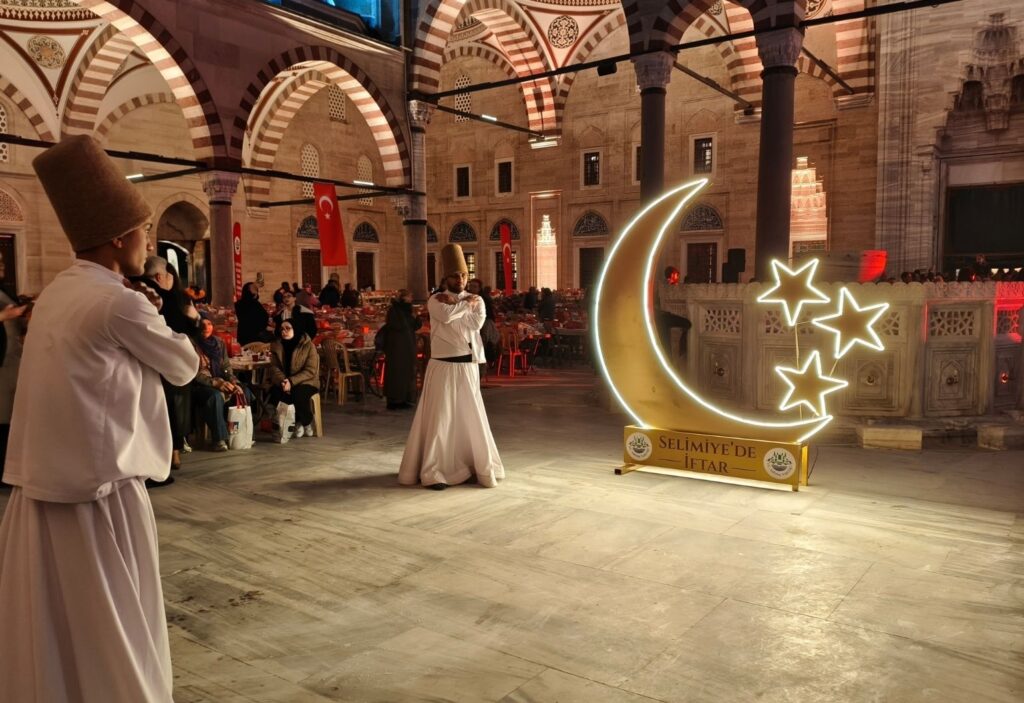 Büyük Selimiye İftarı, Selimiye Camii’nde vatandaşların oruçlarını açması ve birlikte iftar yapmalarıyla sona erdi. Program, semazen gösterisi ile son buldu.