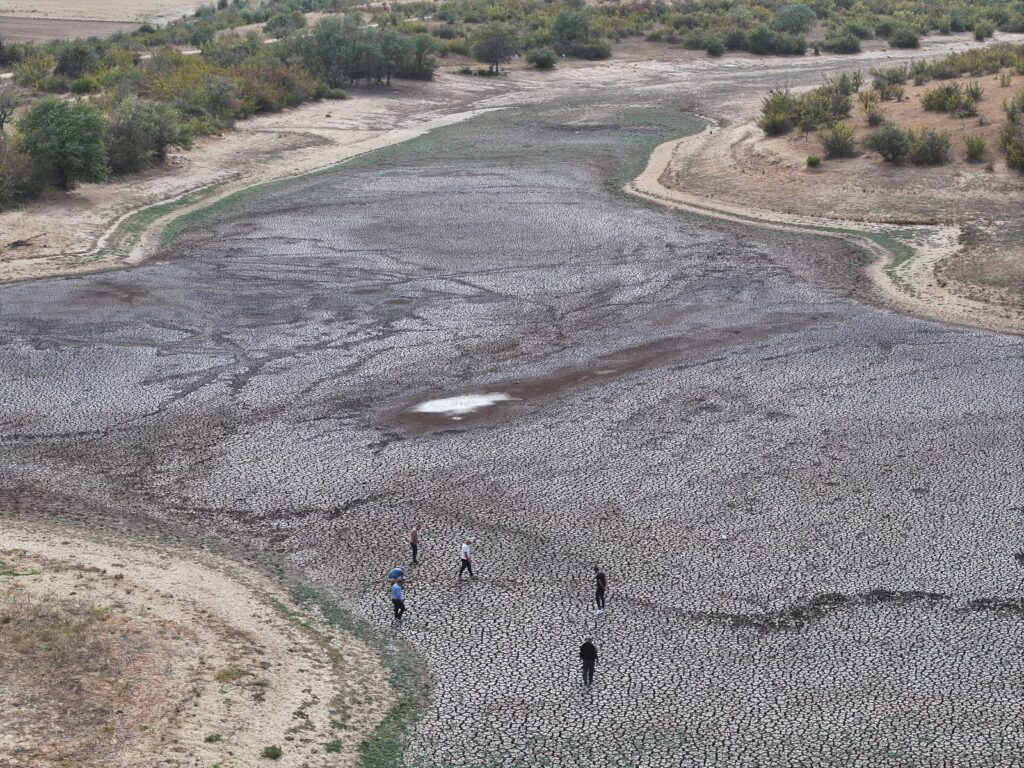 Edirne’nin Havsa ilçesine bağlı Şerbettar köyündeki gölet, kuraklık ve aşırı sıcaklara bağlı yaşanan buharlaşma nedeniyle tamamen kurudu.