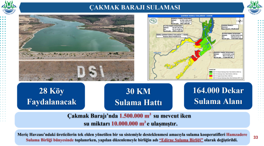 Vali Sezer’in açıklamasına göre bölgede çok sayıda kooperatif ve bireysel sulama faaliyeti bulunmasına rağmen su kaynağının tek olmasından dolayı yeni bir yönetim modeli hayata geçiriliyor. Bu kapsamda Hamzadere Sulama Birliği’nin adı “Edirne Sulama Birliği” olarak değiştirildi ve birliğin merkezi Uzunköprü’ye taşındı.