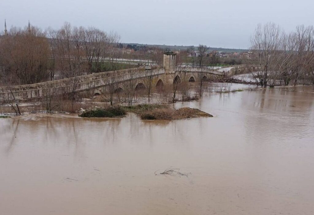 Tunca Nehri yoğun yağışların ardından yatağından taşarak Sarayiçi’ni sular altında bıraktı. İki set arasındaki alan adeta denizi andıran geniş bir su kütlesine dönüştü.