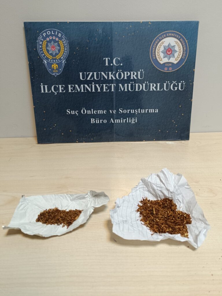 Edirne’nin Uzunköprü ilçesinde uyuşturucuyla yakalanan şüpheli gözaltına alındı. İlçe Emniyet Müdürlüğü ekipleri, Aşçıoğlu Mahallesi Kazım Karabekir Caddesi’nde durumundan şüphelendiği O.G’nin üzerini aradı.
