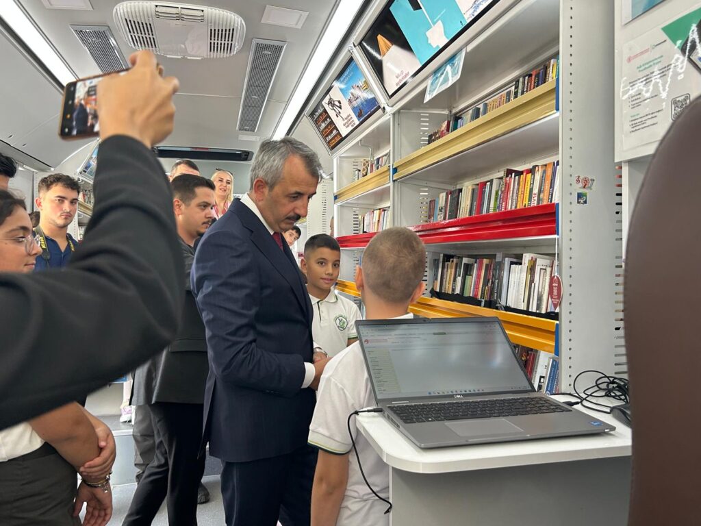 Fidan dikiminin ardından Vali Sezer okul bahçesine gelen gezici kütüphaneyi de ziyaret etti. İçinde kitaplarla donatılmış otobüsü gezen Vali, öğrencilerle kısa sohbetler yaptı, miniklerin kitaplara olan ilgisini yakından gözlemledi.