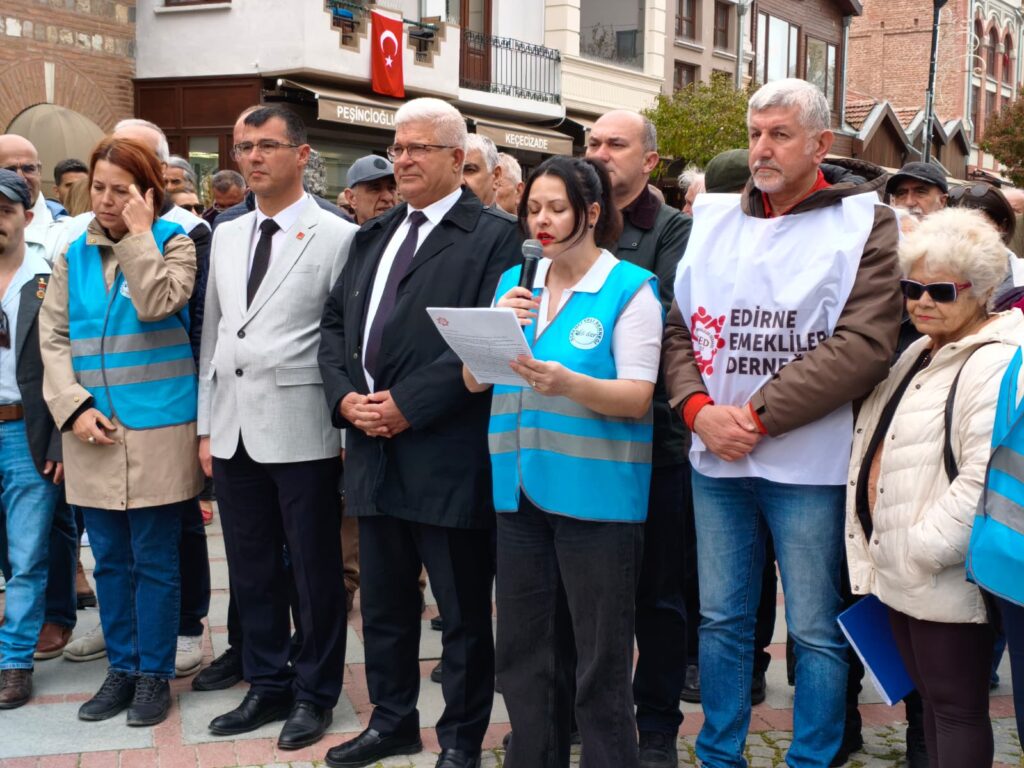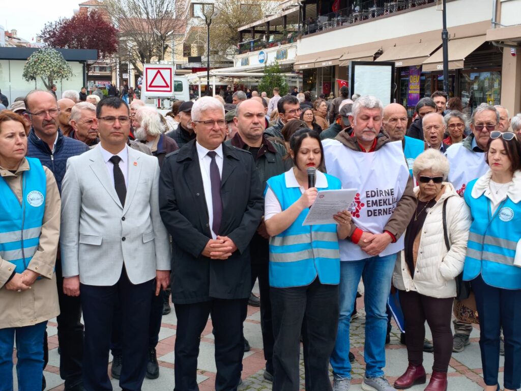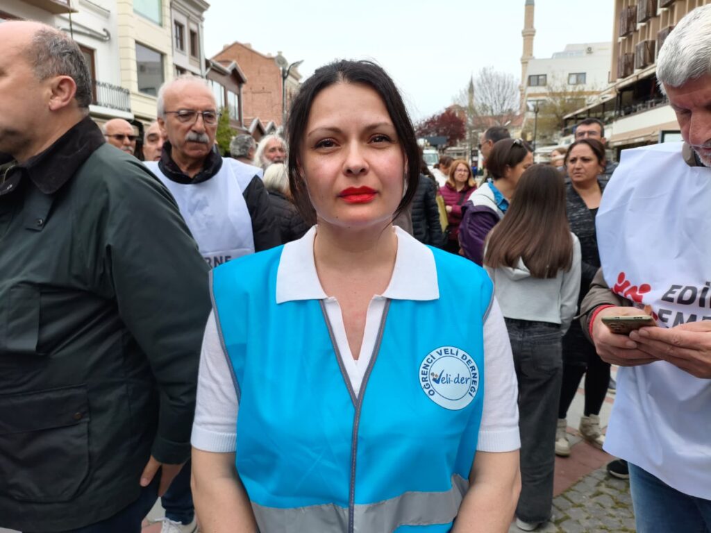 Edirne Öğrenci Veli Derneği (Veli-Der) Edirne Şubesi yöneticisi Kezban Demir, Saraçlar Caddesi PTT önünde bir konuşma gerçekleştirdi.